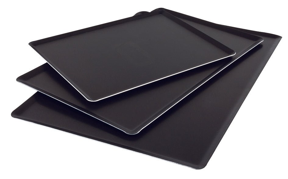 The Matfer Bourgeat Exal® Aluminum Baking Sheet is a nonstick kitchen essential measuring 15 3/4" x 11 7/8". Crafted from durable aluminum, it ensures even heat distribution for consistent baking results. The nonstick surface allows for easy release of baked goods, making cleanup a breeze. Perfect for cookies, pastries, and more, this baking sheet is ideal for both home and professional kitchens.