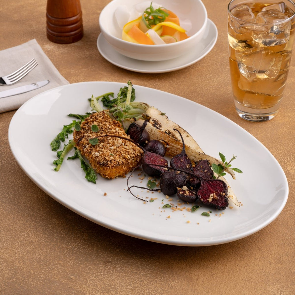 Ariane 14 1/6" Vital Coupe - Warm White Porcelain Coupe Oval Plate - 6/Case (AVCARN000015036) - iFoodservice Online