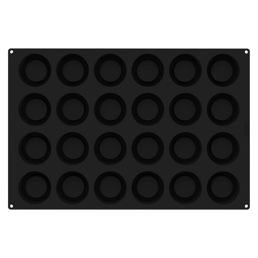 The Louis Tellier Silikomart 60x40 - Capsula 24 Ø80 H35mm (SQ092) is a high-quality silicone mold designed for professional pastry and baking applications. Measuring 60x40 cm, it features 24 cavities, each with a diameter of 80mm and a height of 35mm. Made from premium food-grade silicone, it ensures easy release, durability, and heat resistance, making it ideal for creating uniform desserts, mousses, and baked goods.