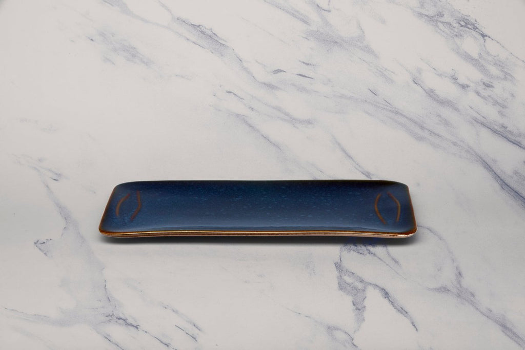 Ariane Laps 11'' x 6'' Splash Denim Porcelain Rectangle Platter - 6/Case (ALPARND53011004)