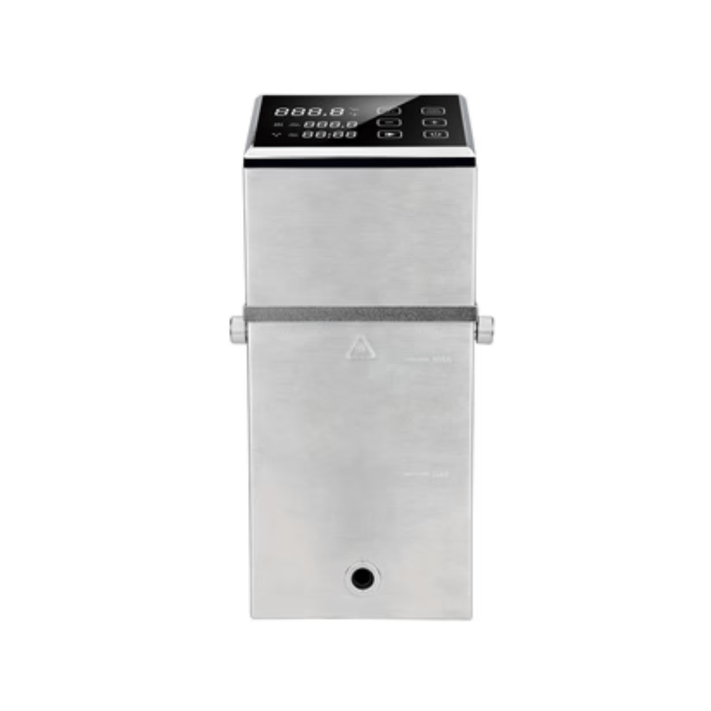 This thermal circulator offers precise temperature and time controls, an adjustable fixed clamp, and a removable filter for easy cleaning. It is IPX7 certified waterproof and includes an auto shut-off feature for safety.