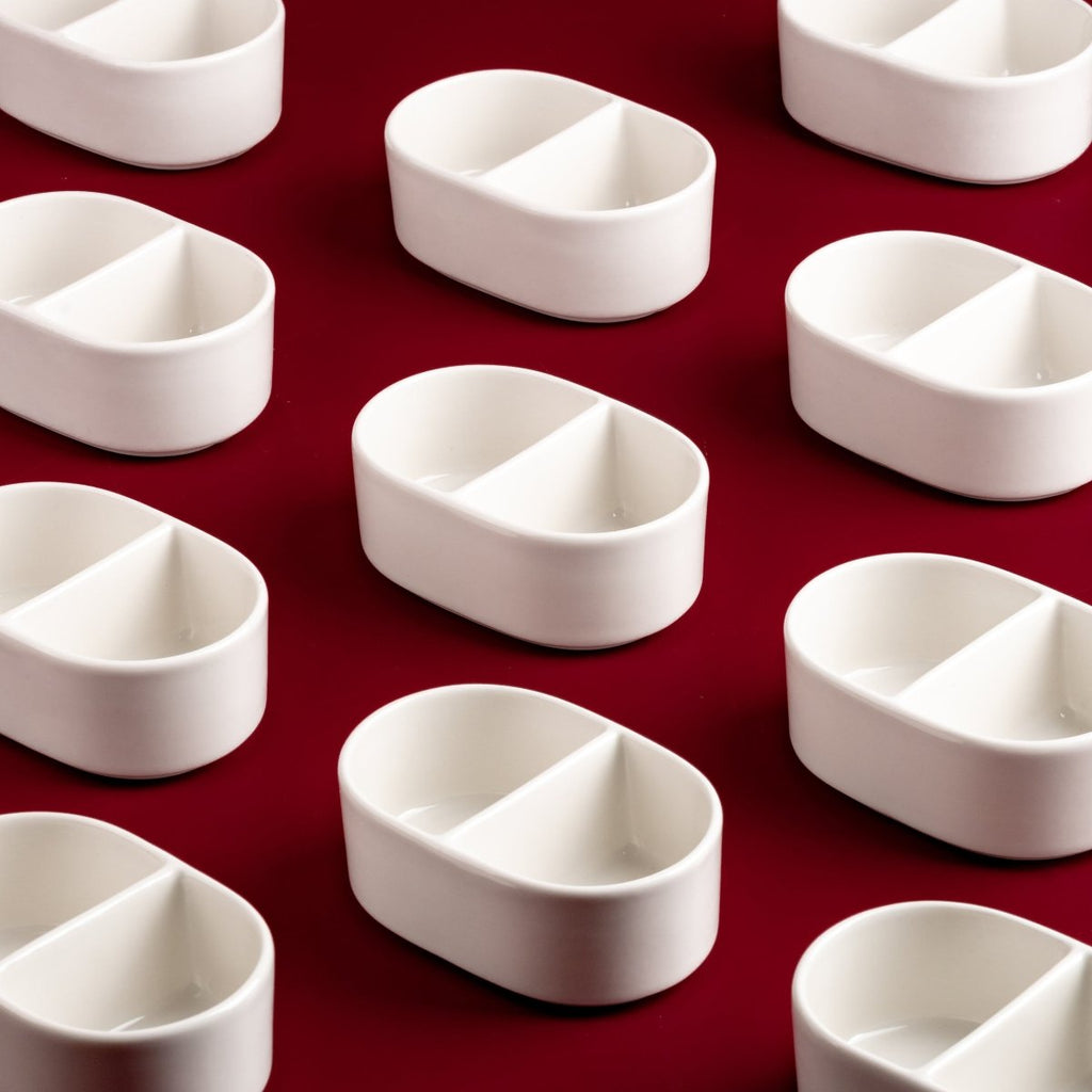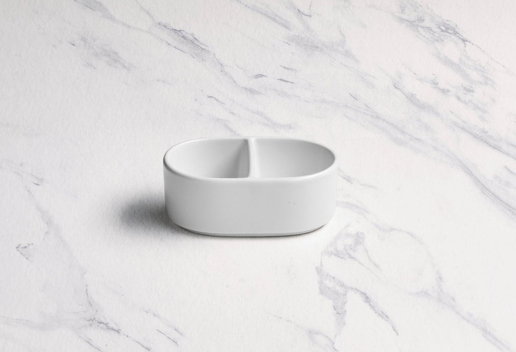 Ariane White 4 1/3" Prime-Warm Porcelain Sugar Pack Holder With Partition - 12/Case (APRARN000077003)